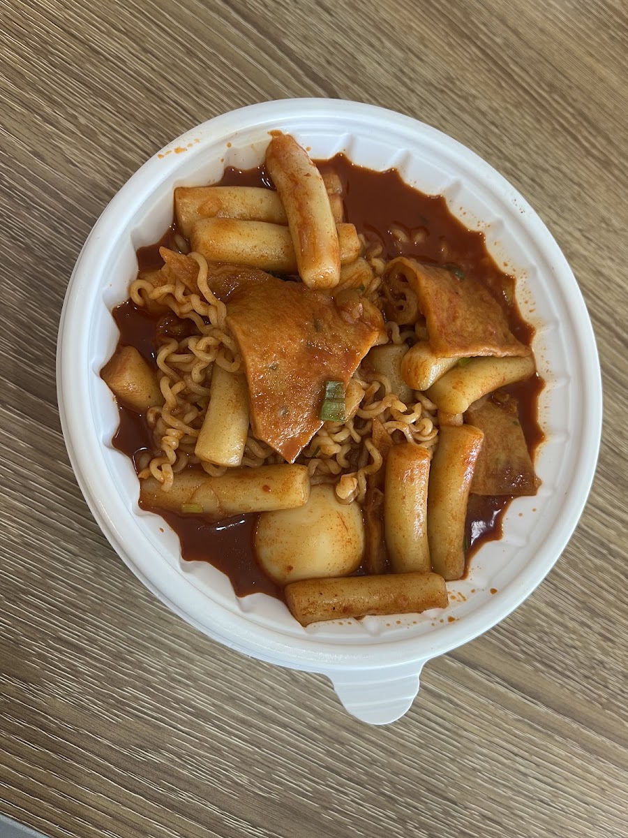 Wow. Came for takeout, got one of the best, crispiest pork katsus Ive ever had!! Brought a person who grew up in Korea and is pretty picky, and they also agree!! Totally unexpected for just a quick bite we wanted late at night! My pictures don't do it justice because we got takeout but hopefully you can tell how light and crispy it is. Not greasy, the inside is almost creamy not dry at all, perfectly seasoned breading, such that even if you didn't eat it with sauce it would still be delicious!! The Korean style katsu sauce was a great pairing though!! We also got odeng an ddeokkbokkk which were quite good! But we really want to try the kimbap next time because they looked so scrumptious in the photos and they were just like the ones they sell in Korea and have an ideal filling to rice ratio as they are supposed to! They were sold out by the time it was late night though, so we will have to come earlier next time! Additional bonus: the place was quite clean despite being a couple years old and run by a very small team it seems! A very cute simple hangout spot I'd love to bring a few friends at any time and the man at the counter was so kind and nice. Highly recommend, if you can't tell already!! :). The little flower lights and blue and white theme was so cute. I definitely want to dine in next time too!